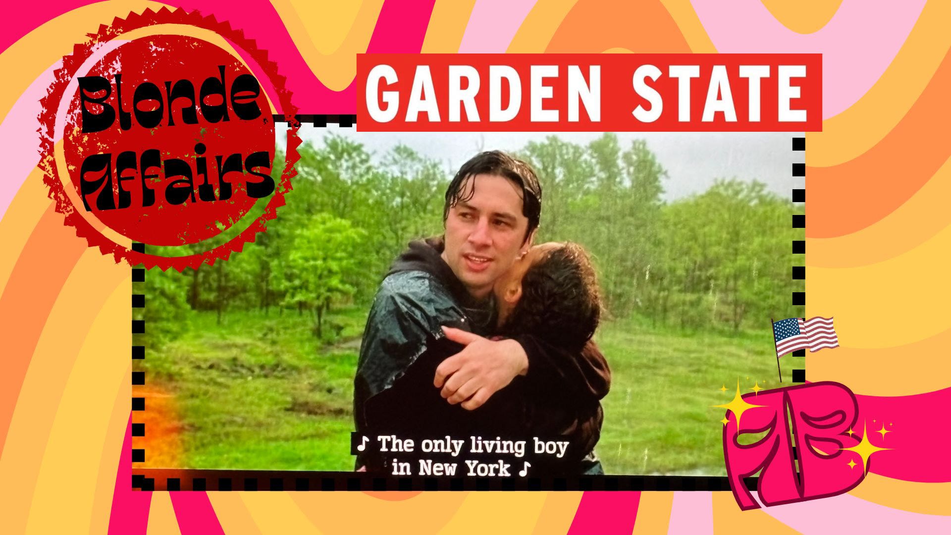 Garden State is of civic relevance because it’s part of the Criterion Channel’s smartly-timed “Family Reunions” collection… but is Garden State blonde? Yes, of course. It’s from 2004, and written and directed by Zach Braff.